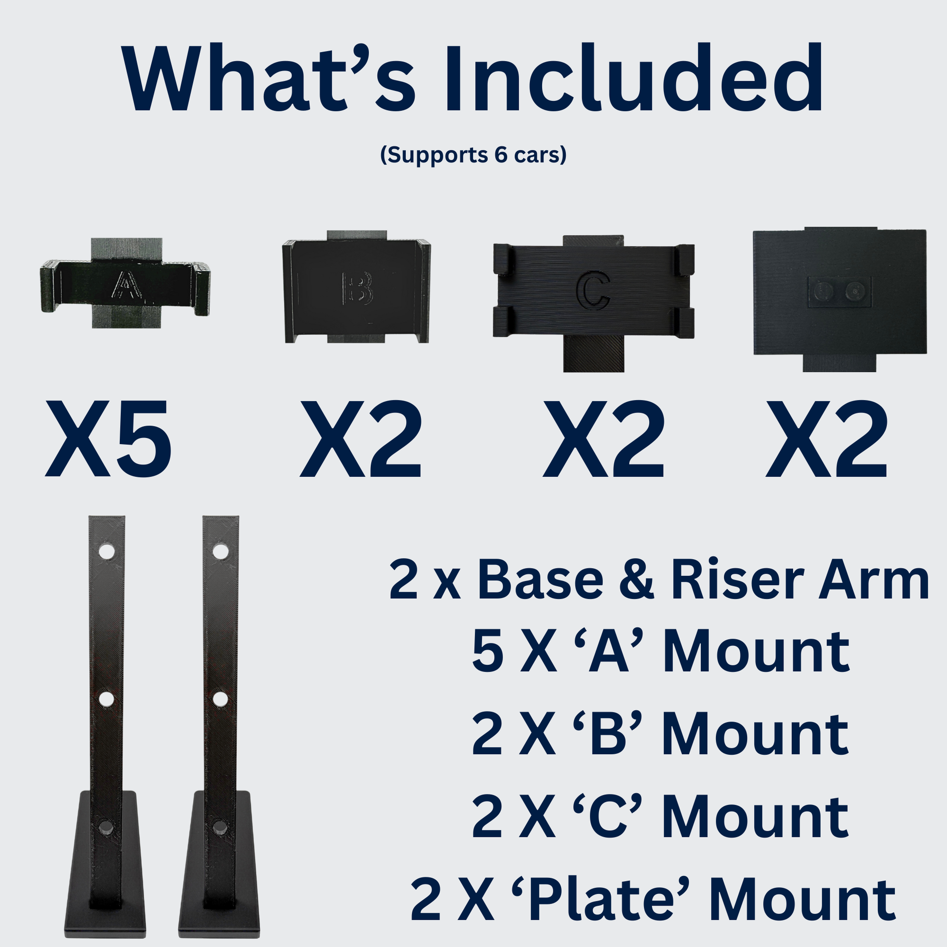 - 2 Riser Arms: Allows for multiple display configurations, putting your cars in the spotlight.