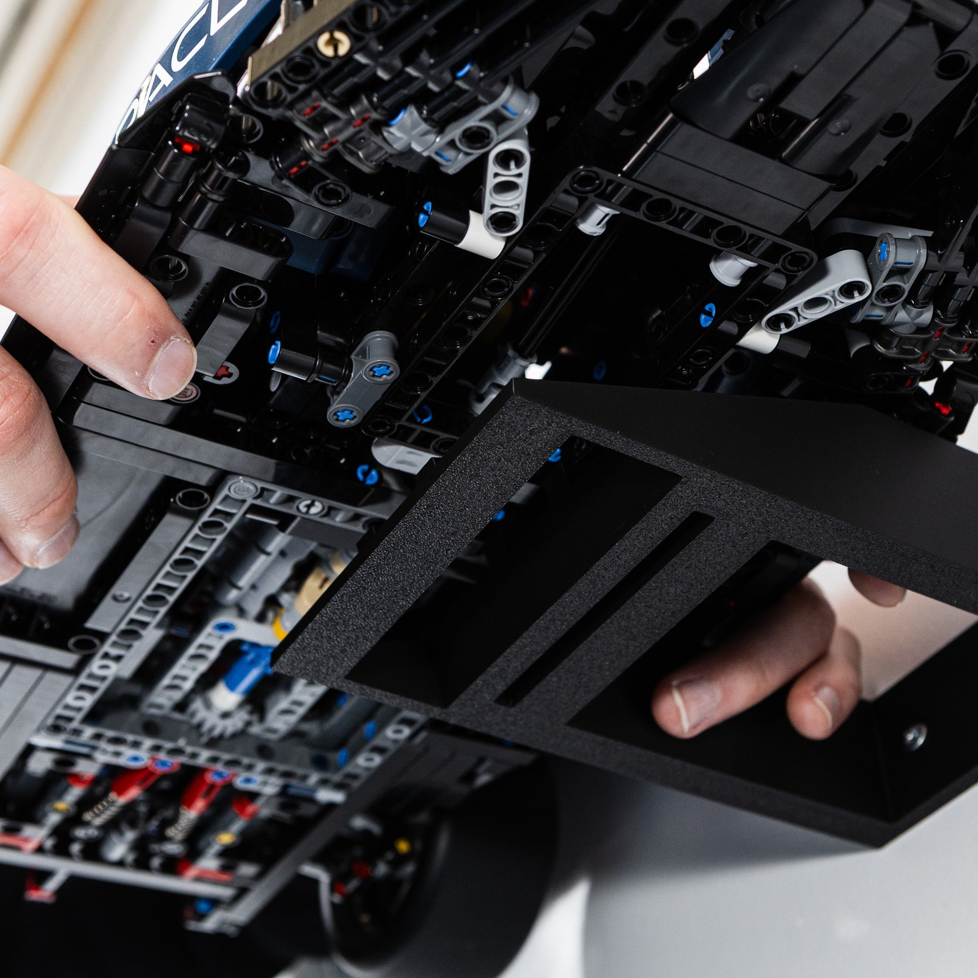 - Proudly crafted in the UK by a small family-owned business, each display bracket is designed with meticulous attention to detail and superior quality. Utilizing advanced 3D printing technology, these durable brackets are engineered to securely support the weight of your prized Technic model, offering a dynamic and visually striking display solution for collectors.